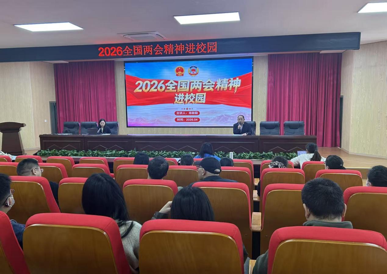 会议伊始,马克思主义学院德法教研室主任肖敏勤受邀作“2026年全国两会精神进校园”主题宣讲。宣讲紧扣两会部署、湖南行动、学校担当,深入解读了乡村振兴的“变”与不变,强调要以党建引领为核心,扛牢政治责任,拓展增收帮扶路径,凝聚长效帮扶合力,坚持以不变固根基、以求变谋发展,推动两会精神在校园落地生根、入脑入心。
