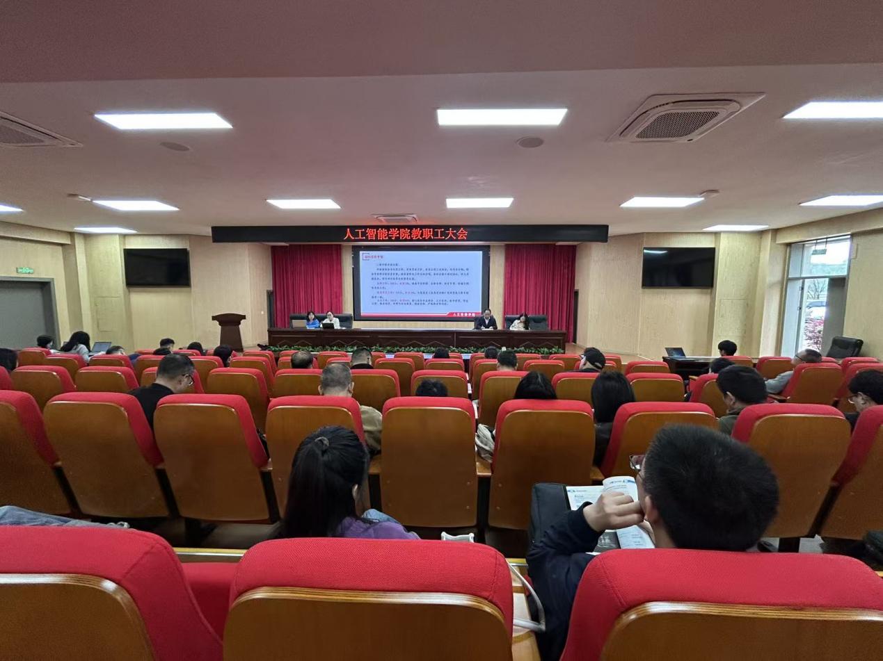 为深入学习贯彻2026年全国两会精神,全面落实党风廉政建设与师德师风要求,统筹推进党建、教学、学管及改革发展各项工作,4月15日,人工智能学院在天心校区北院多功能报告厅召开党员大会暨全体教职工大会。学院党总支书记刘志勇主持会议,学院全体党员、教职工参会。