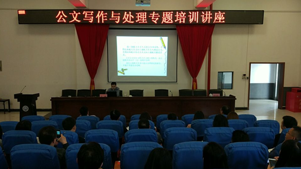 4月19日下午,为进一步提升全校公文写作水平与规范化处理能力,助推学校内涵建设,学校邀请省政府文电处副处长艾斌来校作公文写作与处理专题讲座。校长戚人杰出席并全程听取报告。党政办全体成员、各二级学院及有关部门综合办公室主任等参加了培训。校长助理宋以庆主持。