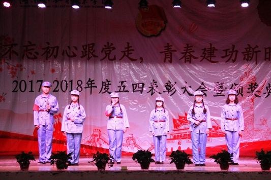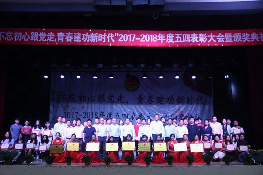 表彰大会在朗诵节目《破晓的黎明》拉开序幕。党委副书记唐文宣读了《关于表彰2017-2018年度先进集体和个人的决定》,决定对电商软件3171班等24个先进班集体、曹红梅等28名三好学生、毛子仪等77名优秀团学干部、李贞等63名优秀团员、谢楠楠等15名优秀志愿者、谭晶等19名宣传积极分子、张妮等17名文娱积极分子、宁金涛等9名体育标兵、杨凯等6名优秀社团理事长、向雨等6名优秀社团会员、唐子文等36名优秀寝室长进行表彰和奖励。 参加晚会的校领导分别为受到表彰的先进集体和个人颁奖。
